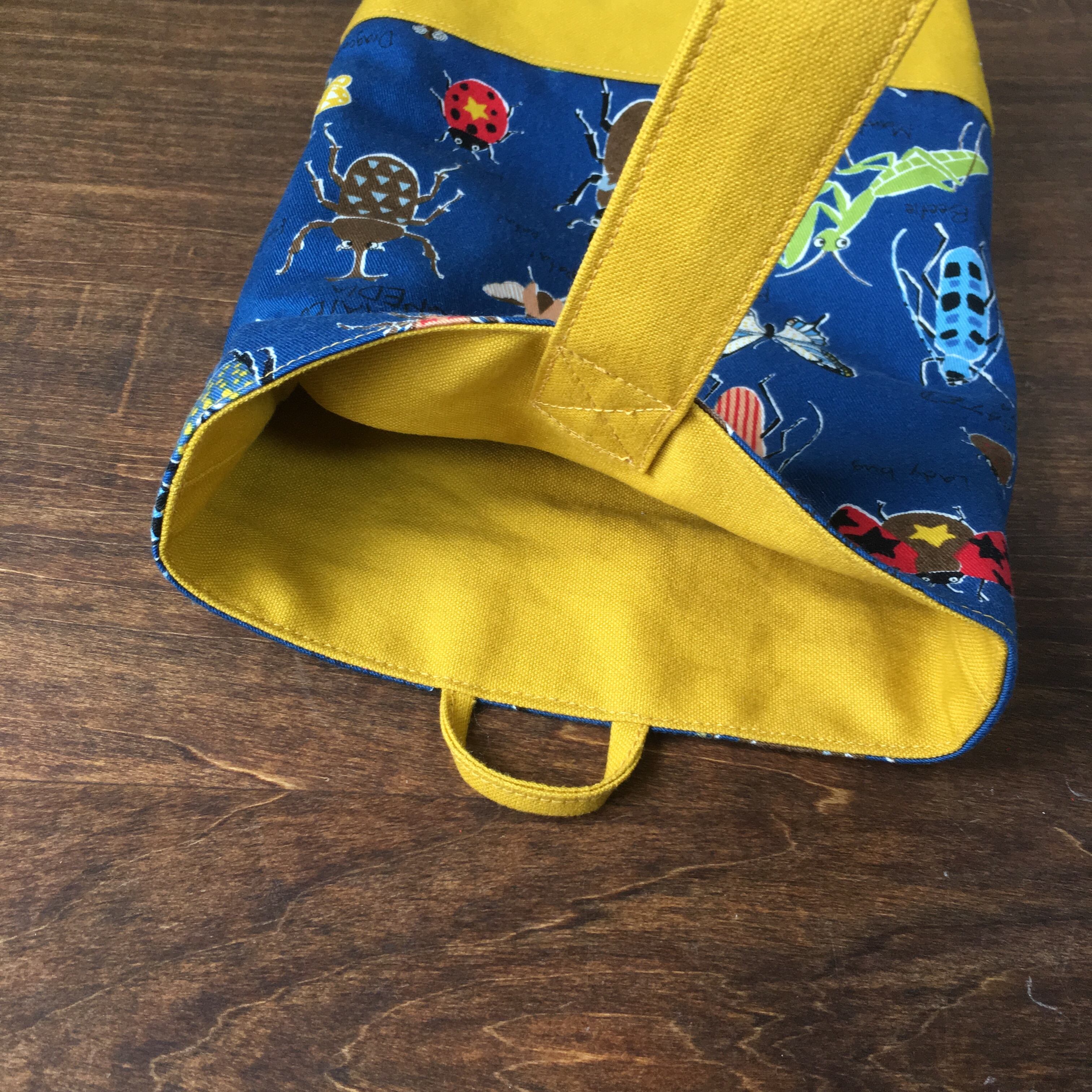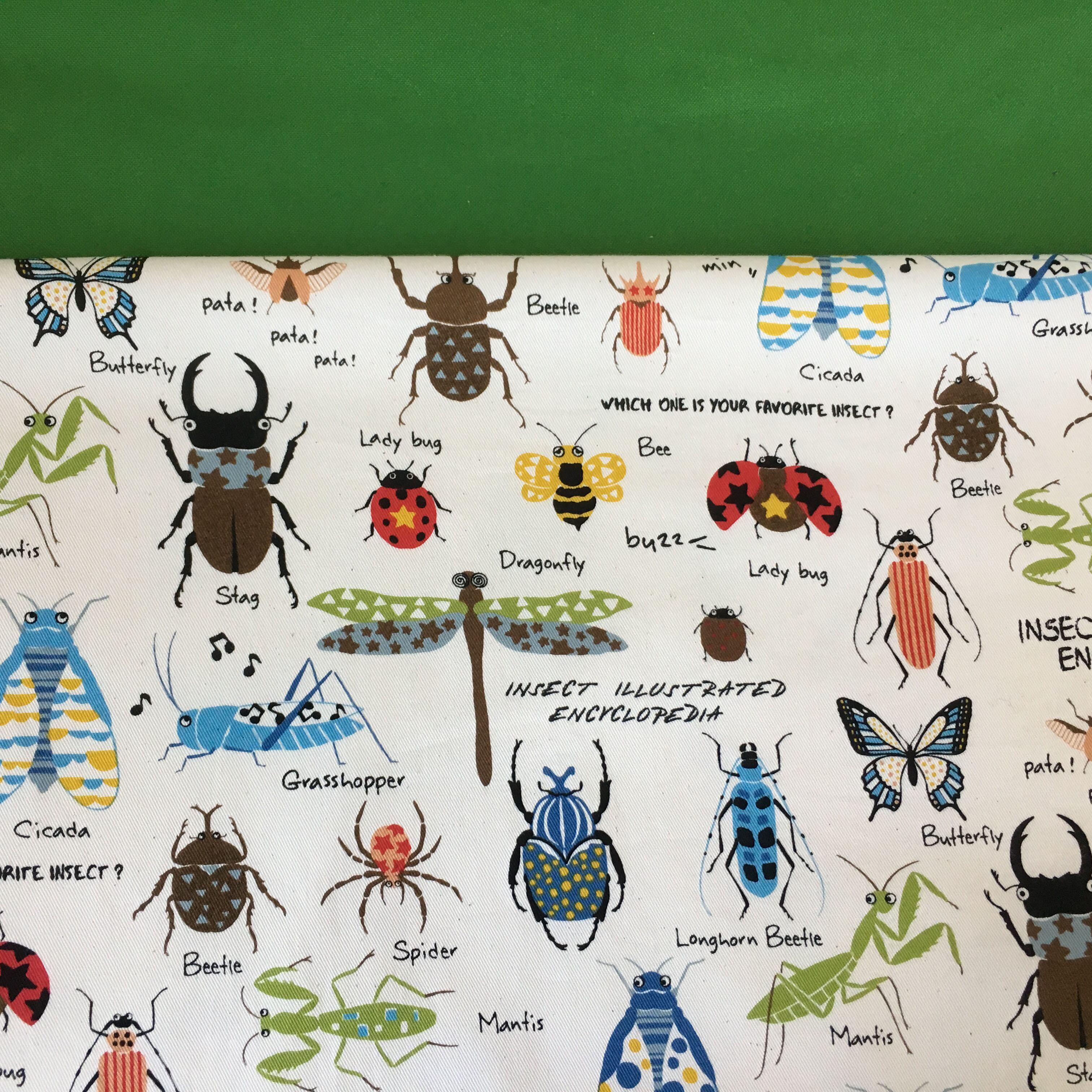 大柄の可愛い昆虫柄がいっぱいの生地で入園グッズを作りました。