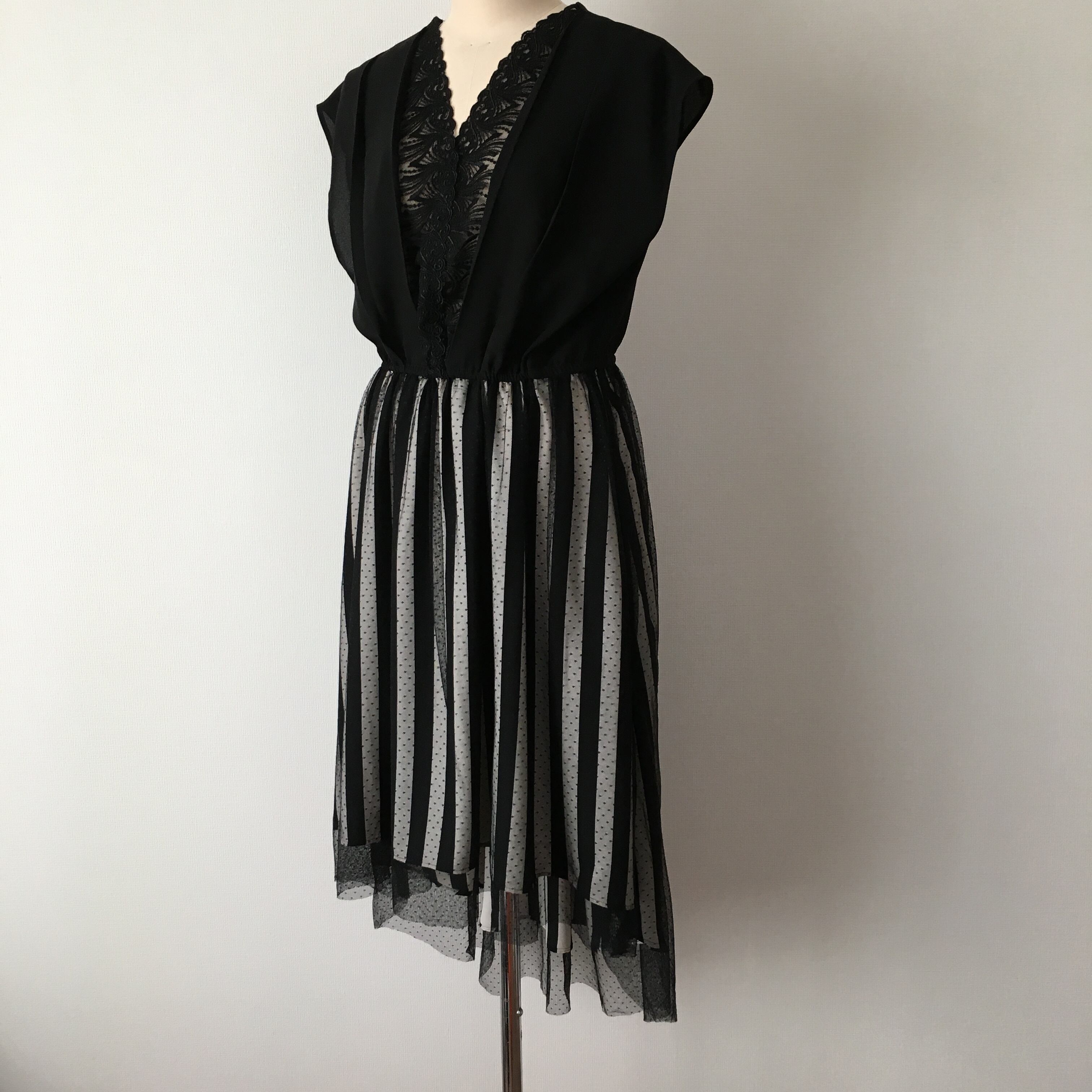 スカートはボーダーと細かいドットのチュールでヘムラインのシルエットになっております。