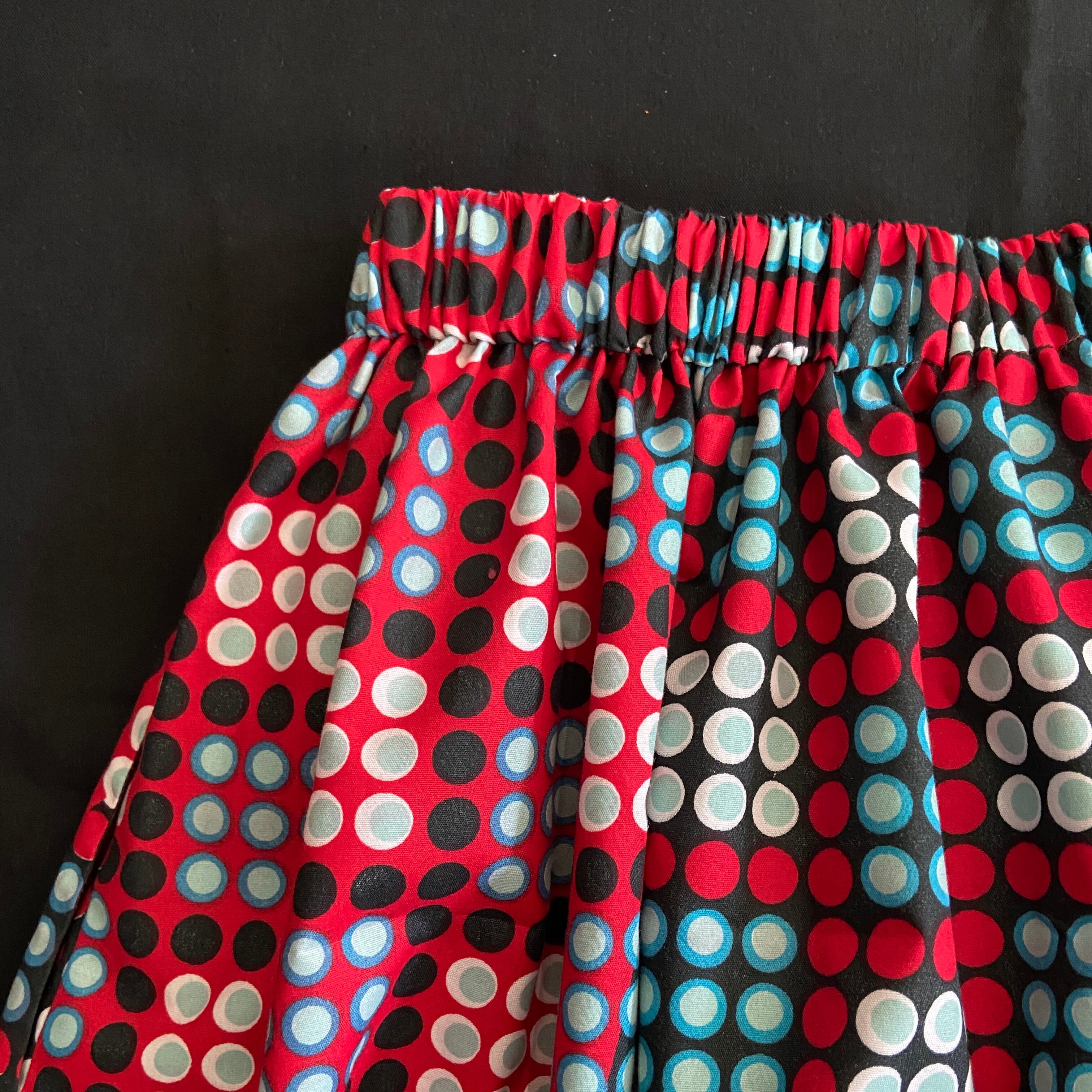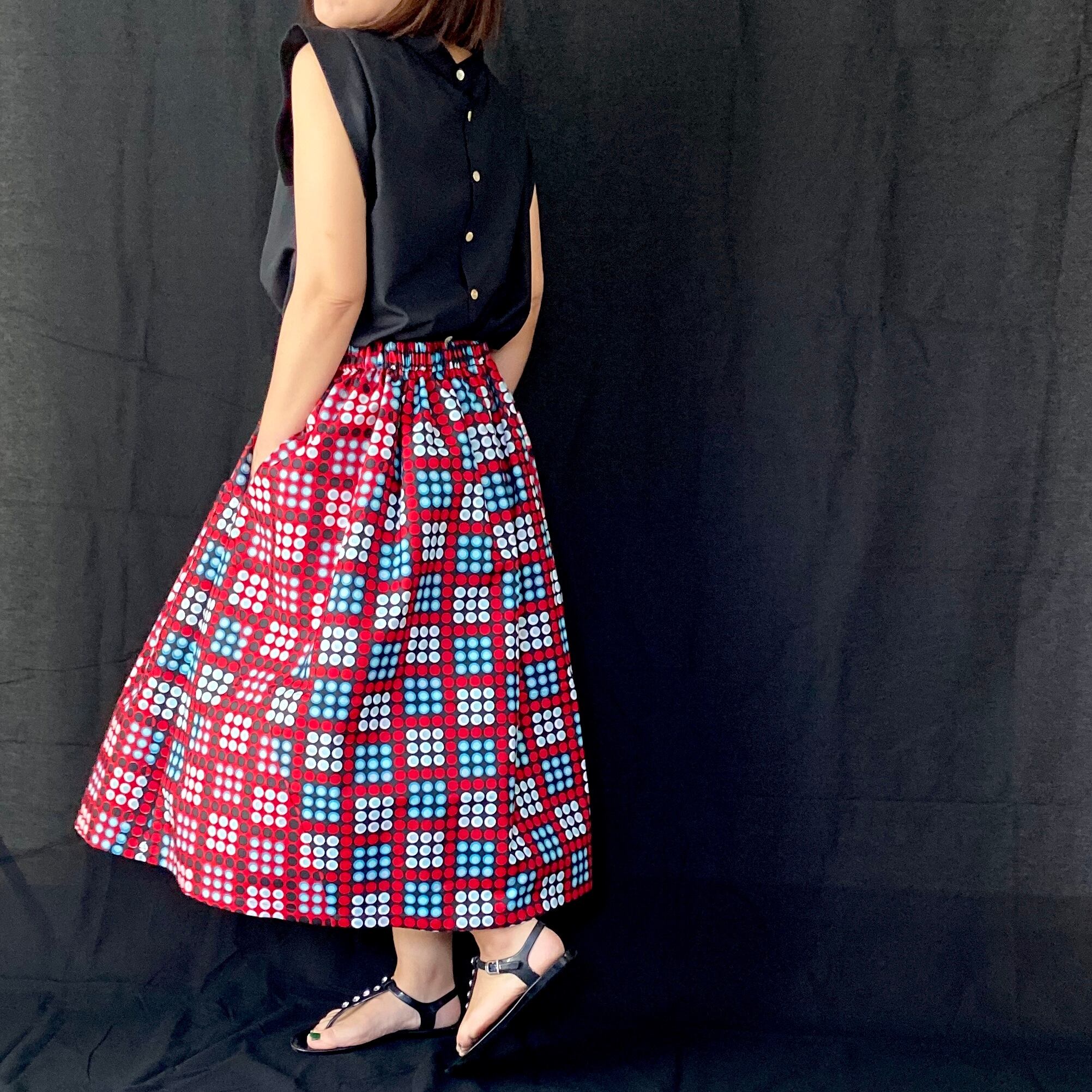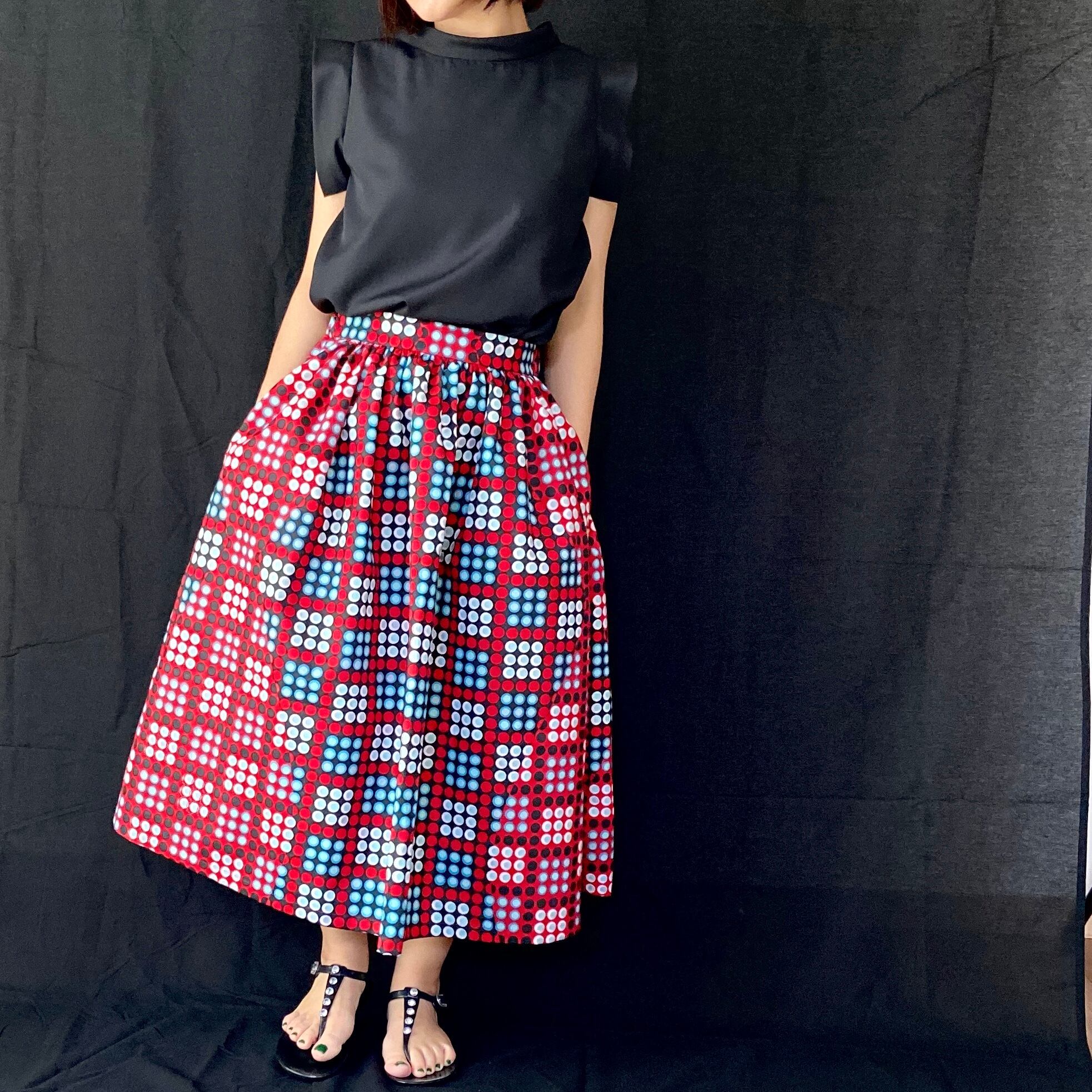 ポリエステル製アフリカンワックス風生地を使ったギャザースカート。