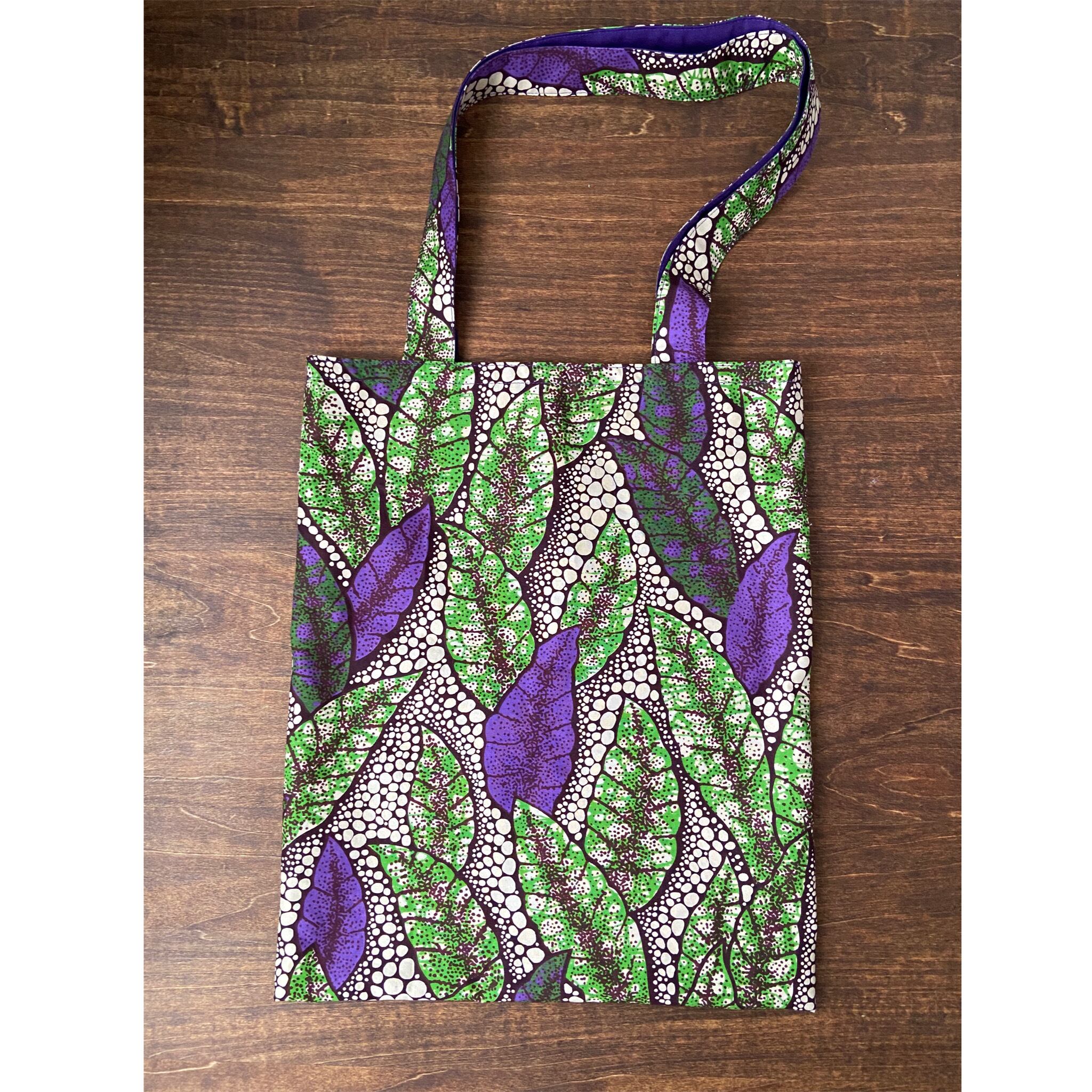キテンゲと言われるアフリカンプリントの個性的な生地でシンプルなトートバッグを(1枚仕立て)作りました。