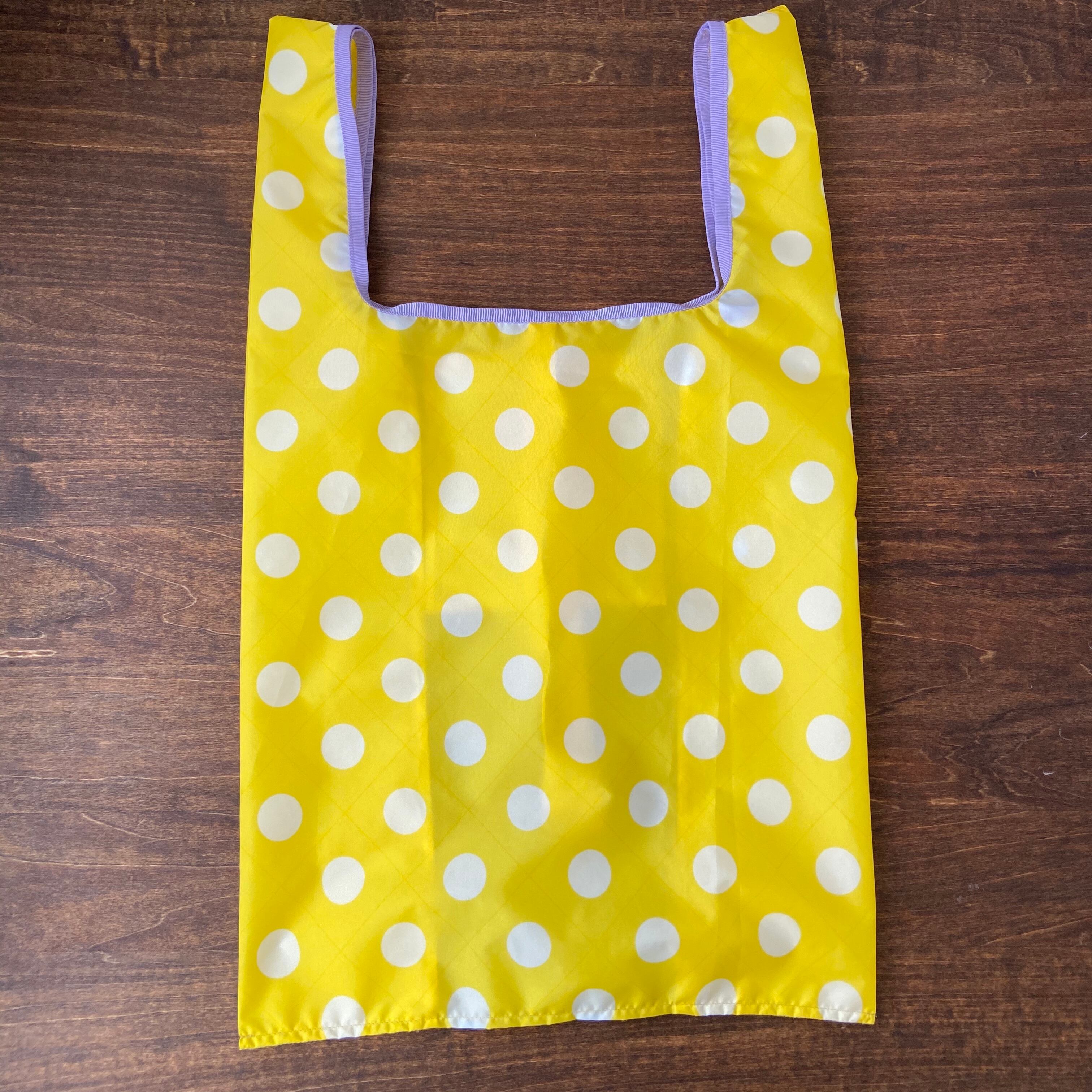 素材は防水生地です。形はレジ袋型で、サイズはコンビニ袋のLサイズ位です。マチが20cmと幅広くなっているので、お弁当もかたよらずに入れられます。