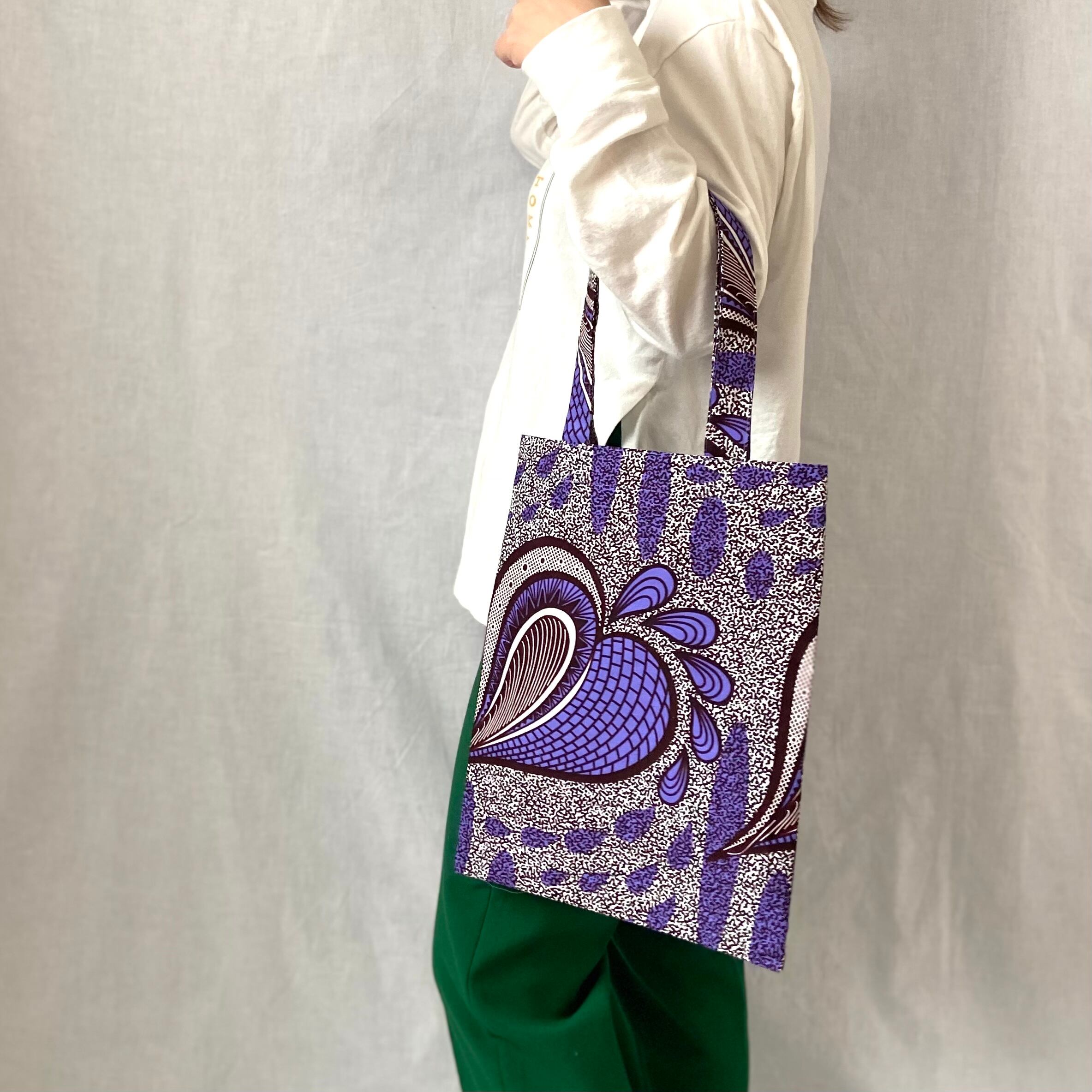 アフリカンプリントの個性的な生地で作ったシンプルなバッグを(1枚仕立て)です。